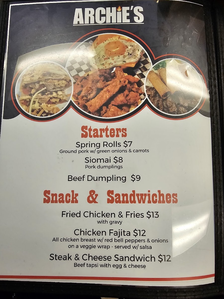 Alongside main courses, you’ll find classic bites like Siomai and Dinuguan Pork, perfect for a lighter snack or to round out a meal. Refreshing beverages such as chilled sodas add a familiar touch to the dining experience without fuss. Overall, Archie’s menu reflects approachable Filipino cuisine meant to be enjoyed in good company, with dishes that carry a sense of tradition and everyday enjoyment.